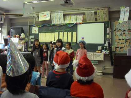 12/21 2学期 お楽しみ会 公開日 2010/12/21 更新日 2010/12/21 校長室より 2学期のお楽しみ会が行われています。劇あり、歌あり、校庭遊びありと、それぞれ工夫をしながら練習をして臨んでいます。学習にも本気でがんばっていた子どもたちですので、楽しいお楽しみ会もいいなあと思って観てきました。お友達の演技や歌を聴いて、子どもたちはとっても楽しそうです。