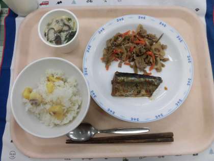 秋には、たくさんの食材が旬を迎えます。そこでクイズです。今日の給食には、秋が旬の食材をいくつ使っているでしょうか?