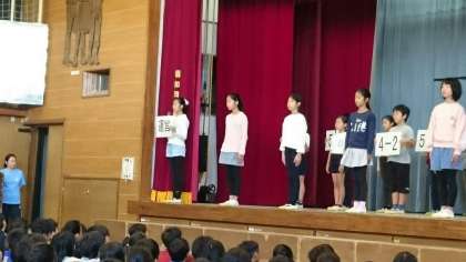 緊張した面持ちで、舞台に立つ子ども達。
