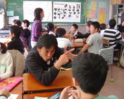 ブライアン・バード先生(聖学院大学総合研究所講師)と保護者の方に協力していただき活動しています。今日は、what food do you like ? をfinger signつきで勉強しました。