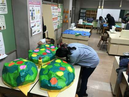 先週の金曜日に引き続き、家庭科室にお集まりいただき第2回衣装作りを行いました。ご自分のお子さんの衣装を作り終わった後も、「子ども達も早く衣装を着て演じたいだろうね。」「衣装を着ると、さらにやる気もあがるだろうね。」と会話を交わしながら、5年生の子達のことを思って作業してくださってる姿、ぜひ子ども達にも伝えたいなと思います。