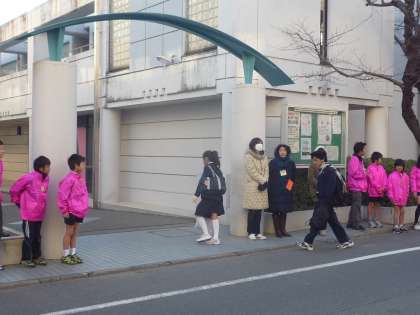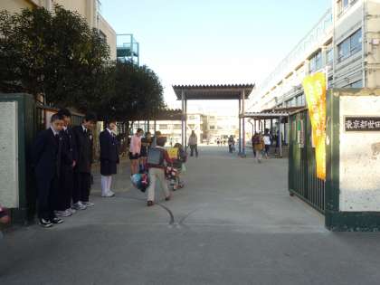 用賀中学校の保護者の方々が、寒い中、中学校の周りに集まってあいさつ運動をしてくださっていました。ご協力に感謝申し上げます。