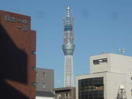 1/13 社会科見学6年生ー3 公開日 2011/01/13 更新日 2011/01/13 校長室より 江戸東京博物館から見えた、スカイツリーです。ビルの谷間に見えて来ましたが、高さよりも大きさを感じました。完成すると634メートルの電波塔です。 来年の春にはできあがるとのこと・・・。楽しみです。 電波塔としては世界1とのこと・・・。世界で一番もいいですよね!