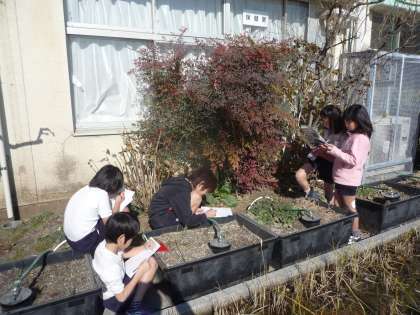 桜の木のような落葉樹の様子や、冬に咲く花、土の中の生き物などいろいろと観察して記録していました。日本特有の季節と生き物の関わりについて学習が深まりそうです。