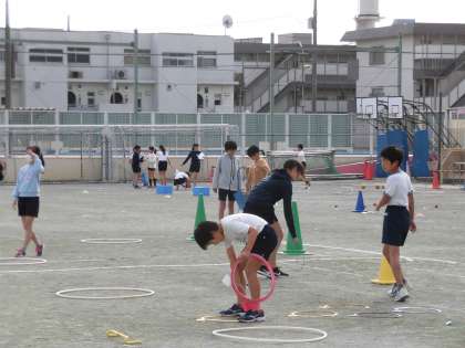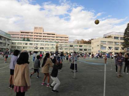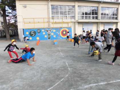 今日はなかよしタイムでした。今回も6年生が計画、準備、片付けととても丁寧に熱心に仕事をしていました。学芸会に関連したゲーム、道具を使って元気に体を動かすゲームなどいろいろな工夫をしました。今日はとてもよい天気です。青空の下、みんなとても楽しそうに歓声を上げていました。