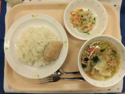 今日の献立は、世界のある国の料理です。クイズです。今日の献立は、どこの国の料理でしょうか?