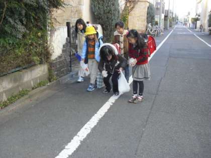 今日は「ようがの学び舎」合同地域清掃です。とても寒い朝でしたが、子どもたちはビニール袋を手に持ち、登校途中のごみを拾いました。先生方も分担場所で子どもたちを見守っています。