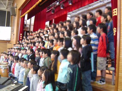 4年生の合唱「南風にのって」と合奏「シェリト・リンド」の発表がありました。合唱は、口をよく動かして、笑顔で歌おうとしている子どもがたくさんいました。さわやかで元気いっぱいの歌声が体育館に広がりました。合奏では、練習でだんだん速くなってしまって、なかなか息を合わせられませんでしたが、本番では心を一つにして演奏できました。