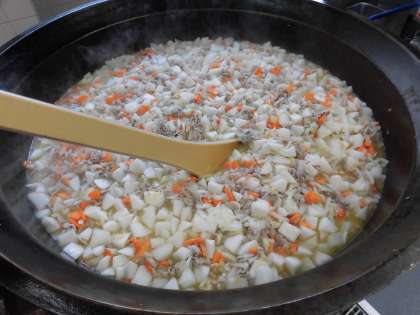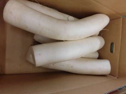 今日の「大根カレー」に使われている大根は、世田谷区がJAや区内の農家の方々と協力し、8月に種まきから行って栽培した貴重な「大蔵大根」を使っています。そこでクイズです。「大蔵大根」の特長は、次のうちのどれでしょうか?