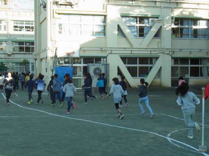 気温が下がり、肌寒い日が続いていますが、朝から用賀小学校の子供たちは元気に過ごしています。