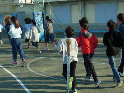 中学年、低学年の児童も、朝の準備を素早く済ませ、ボールで遊んだり、フラフープを使って遊んだりしています。