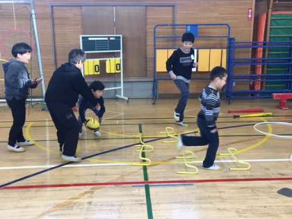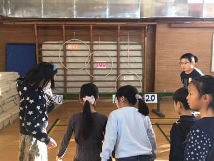 5年生は1年生が喜んでもらえる遊びは何かを考え、ルールを考えたり場の設定を工夫したりしました。