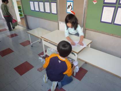 教室でのお掃除レンジャーは、みんなのお掃除ぶりを楽しみに見に来ています。ほんとに用賀小学校の子どもたちはお掃除が上手!