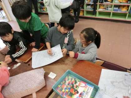 そのおもちゃを使って、1年生とともに遊びました。