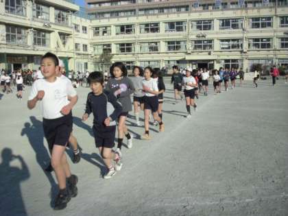 2/1 駅伝朝練習始まる! 公開日 2011/02/01 更新日 2011/02/01 校長室より 2月に入り、駅伝大会に向けての朝練習が始まりました。各クラスごとにウォーミングアップ後に本練習に入ります。インターバルトレーニングや長い距離をゆっくり走ったりと、クラスで決めた練習メニューでのトレーニングです。「一人が1秒縮めると全体で30秒縮まるぞ!」と担任の先生から檄がとんでいます。駅伝を通して、クラスの団結を目指していきます。朝練習への、ご家庭でのご理解とご協力をよろしくお願いいたします。