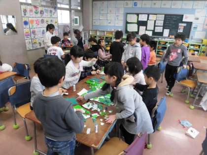 2/19 1年 6年生を送る会準備 公開日 2019/02/20 更新日 2019/02/20 学年 2月末に行われる6年生を送る会の準備を行いました。4月に入学してきてから、1年間気にかけてくれた6年生に少しでも気持ちが届くように、一生懸命作りました。送る会では、1、2年生が作った背景で開かれる予定です。今から式が待ち遠しいですね。