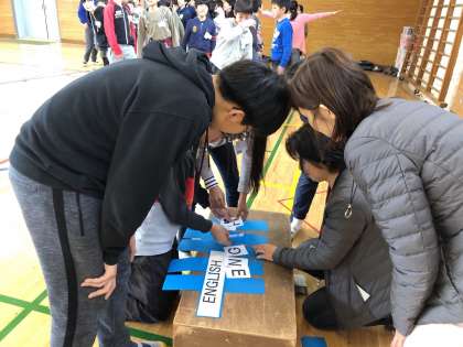 6年 FUNDAY 公開日 2019/03/12 更新日 2019/03/12 学年 3月7日、2校時に体育館で英語のFUNDAYが行われました。 ○×クイズや、リレー、アルファベット探しなどクラス対抗のゲームが行われました。学年全員でのゲームは大いに盛り上がりました。 準備をしていただいた英語支援員の保護者の皆様、本当にありがとうございました。