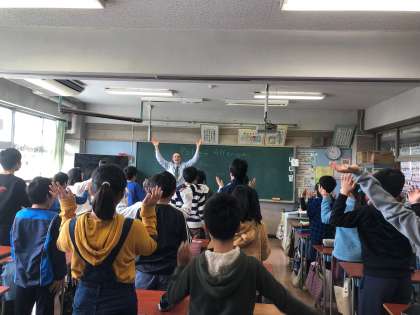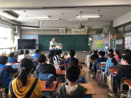 6年 英語 公開日 2019/03/12 更新日 2019/03/12 学年 3月11日に6年生を対象にALTのバード先生による授業が行われました。 「Pollen Allergies(花粉症)」の歌は、今の季節にぴったりで、共感している子供たちもいました。 桃太郎の紙芝居に合わせて、英語でストーリーを話し、楽しく英語に親しみました。 バード先生、ありがとうございました。