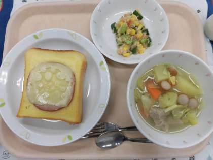 毎月19日は、食育の日です。食育の日には、「給食で世界を飛び回ろう!〜東京オリンピック・パラリンピックに向けて、世界各国の料理に触れよう〜」ということで、いろいろな国の料理を出しています。そこでクイズです。今日の献立は、どこの国の料理でしょうか?