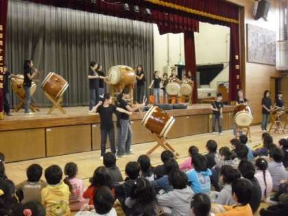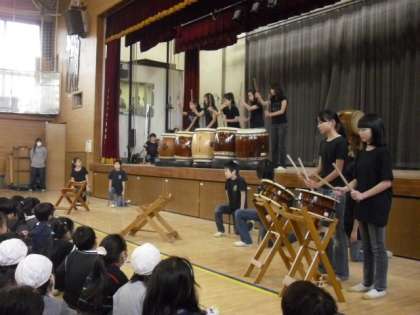 2/10 クラブ発表会〜和太鼓クラブ〜 公開日 2011/02/10 更新日 2011/02/10 校長室より 今日の集会は和太鼓クラブの発表です。「まつり太鼓」「ぶち合わせ太鼓」、そして6年生のみの「長良川太鼓」の発表がありました。力強い太鼓の音とともに地響きが体育館に響き渡りました。声を掛け合いながら、力を合わせながら気持ちを一つにしている姿はとってもかっこよかったです。観ている子どもたちも、勇壮な姿に一心に見入っていました。和太鼓クラブの皆さん、ありがとうございました。