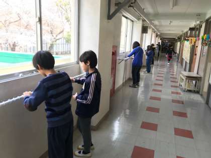 教室移動を終えた後は、入学式準備です。ピカピカの一年生を迎えるために、新6年生と教職員が協力して、活動しました。