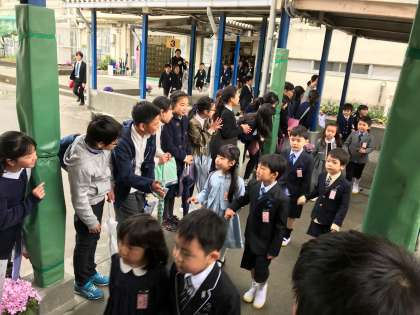 4/8 入学式その2 公開日 2019/04/09 更新日 2019/04/09 学年 緊張した面持ちの1年生に、6年生は優しく声をかけたり、待ち時間に絵本を読んだりしていました。これからも困ったことがあれば、遠慮なく声をかけてくださいね。 最後は入学式会場に手を繋ぎ入っていく1年生に「おめでとう!」と声をかけながら見送りました。