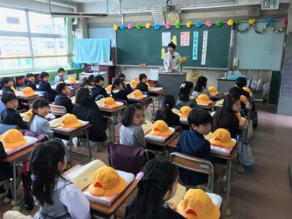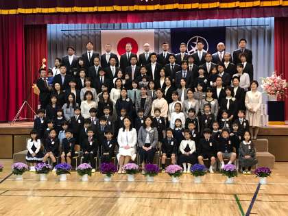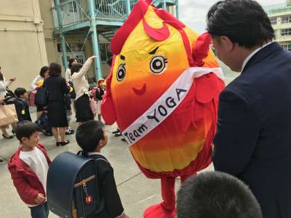 4/8 入学式その3 公開日 2019/04/09 更新日 2019/04/09 学年 式中「おめでとうございます」の言葉に、「ありがとうございます!」と答えたり、「はい!」と返事をしたり、立派に過ごした1年生。 2年生も用賀小の代表として、「おめでとう!」の気持ちを、ステキな歌と合奏で伝えることができました。 式を終え、集合写真をパチリ☆ 校長先生のお話にも紹介があったヨッショーも、1年生のお祝いにかけつけてくれました。