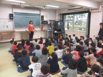 入学式で頑張った子どもたち。あれから2日経ち、本日学年集会を開きました。4名の先生の自己紹介とともに、