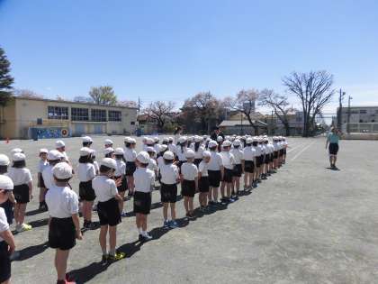 今日は運動会に向けての集団行動を学びました。「キビキビと、そして音を感じた動きをしよう。」というめあてのもと、実際に活動した2年生。昨年よりも素早く動くことができていました。
