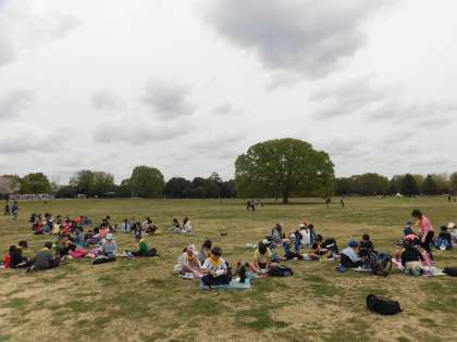 公園の中心にある大ケヤキの近くでお弁当を食べました。