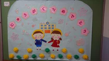 4/21 4月ブックアシストクラブの装飾 公開日 2019/04/21 更新日 2019/04/21 特色ある活動・取り組み 用賀小の子どもたちのために、今年度もブックアシストクラブの皆様が毎月素敵な装飾をしてくださいます。4月は、1階主事室前に1年生の入学をお祝いする飾りです。かわいい色使いが印象的なので、近くを通ったときには、ぜひ立ち止まって見てください。