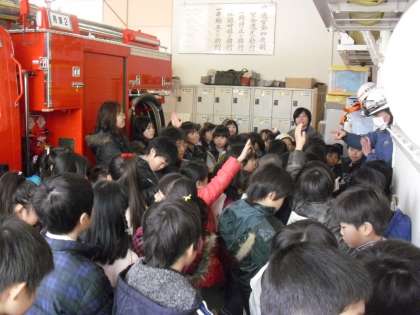 今日は玉川消防署用賀出張所に、3年生の3、4組が見学に行ってきました。消防車や署内、はしご訓練の様子をを詳しく見せていただきました。子どもたちは、ノート数ページにわたってメモを取り続けていました。最後の質問コーナーでも、どんどん手が挙がり「火事の中に入る時は怖くないのですか?」と言った質問もありました。「訓練しているから怖くありません」と答える消防士さんがとても頼もしく感じました。