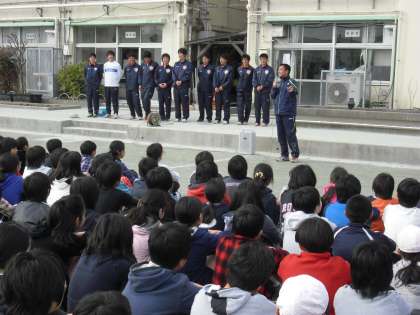 駅伝大会を翌週に控え、とてもよい刺激をいただき、さらにクラスの団結力が高まりました。日体大駅伝選手の皆さん、用賀小学校のために、本当にありがとうございました。