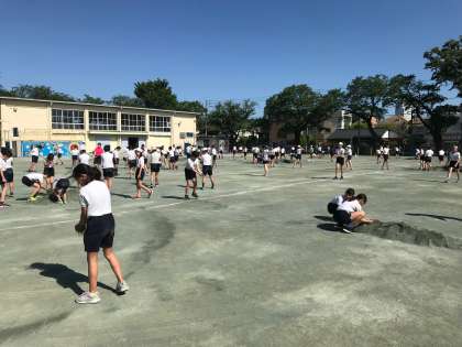 まき終えた後は、旧担任の先生方からも温かい言葉をかけていただきました。一人一人が真摯に向き合い活動することができ立派でした。体育朝会に引き続き、運動会に向けての準備が一つずつ行われています。