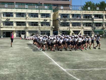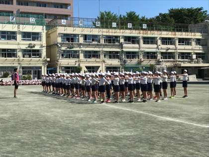 楽しくて長い連休を終え、久しぶりに全校児童が集まりました。運動会に向けて、集団行動を学ぶ体育朝会です。