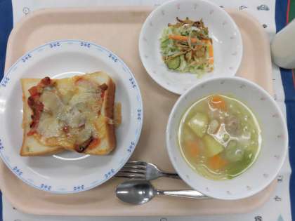 今日は、「ごぼうチップサラダ」に使った、「ごぼう」のクイズを出したいと思います。今日のサラダに使われているごぼうは、パリパリとした食感になっていますが、これはごぼうに何をしたからでしょうか?