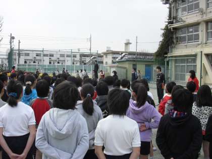 今日の全校朝会は、本校の卒業生である乙武洋匡さんが、金曜日にテレビの取材で来校したことを話しました。乙武さんは「用賀小学校が私の原点である」「素晴らしい友達や先生方に恵まれて充実した学校生活を送れた」と話しています。友達と同じように勉強や運動をするということは、並大抵の努力ではなかったと思います。子どもたちには、よき先輩をよきお手本としてがんばって欲しいと思っています。