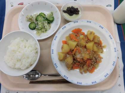 今日は、新じゃがのそぼろ煮に使った、「じゃがいも」のクイズを出したいと思います。私たちがいつも食べているのは、じゃがいものどの部分でしょうか?