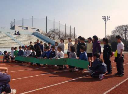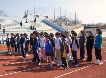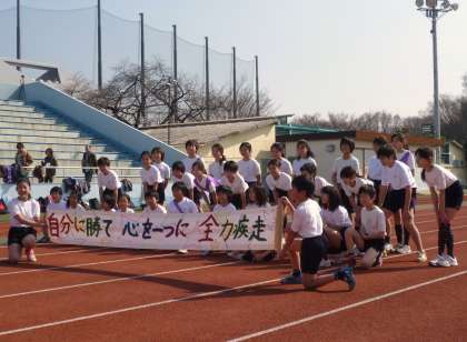 2/23 用賀駅伝選手宣誓ー1 公開日 2011/02/23 更新日 2011/02/23 校長室より 用賀駅伝のオープニングは、各学級の駅伝コール(選手宣誓)です。各学級が長い間取り組んできた練習の心を全体に発表するのです。早朝の練習はきついし、クラスの友達は、走るのが得意な子ばかりではありません。しかし、おおくの困難を乗り越えて創り上げた心の襷をつなぎます。 走れなかった友達のことを何より大切にしての選手宣誓は、感動的でした。