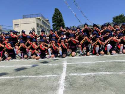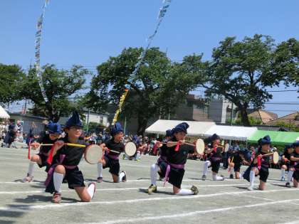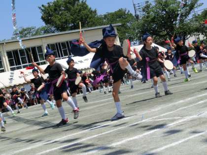 5/25 運動会 3年生 『エイサー〜用賀・豊年の舞』 公開日 2019/05/25 更新日 2019/05/25 学年 パーランクと元気いっぱいのヘーシが校庭いっぱいに響き渡り、3年生のエイサーが始まりました。力強く大きく動く3年生姿は、やる気がみなぎっていました! 全身で表現する3年生舞いと、熱い日差しが相まって、沖縄にいるような気分になりました。