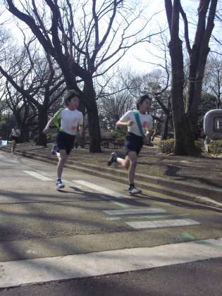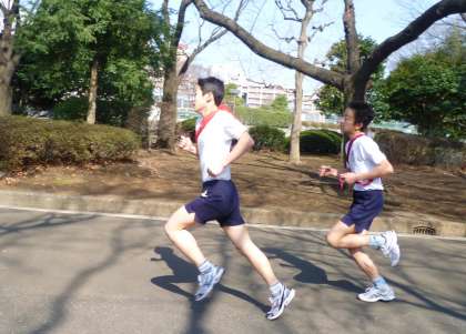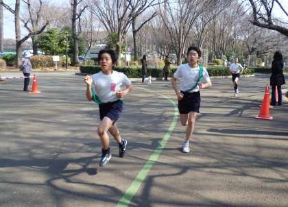 用賀駅伝は、グランド内から公園に出てまたグランドに戻って一周1Kmのコースを周回します。子どもたちは、1キロ、800メートル、600メートル、400メートルを選択して襷をつないでいきます。外周では、多くの方々の声援を頂きました。ありがとうございました。