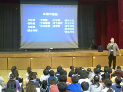 保存食としての味噌の価値、味噌の種類、作り方のなど大学の講義と同じように詳しく教えてくださいます。わざわざ小学生向けにプレゼンの資料も作ってくださいました。