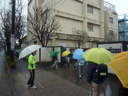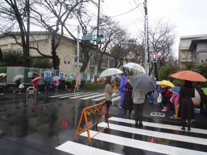 2/28 集団登校のリーダーは5年生 公開日 2011/02/28 更新日 2011/02/28 校長室より 今日から、5年生を班長としての集団登校が始まりました。あいにくの雨の中でしたが、班長さんを先頭にしてしっかり登校できました。学校では登校指導として、教職員が学区域にでていましたが、各班の親班長さん方も心配して見守ってくださいましたからとても安心でした。 ありがとうございました。 5年生の班長さんご苦労様です。明日からもよろしくお願いします。