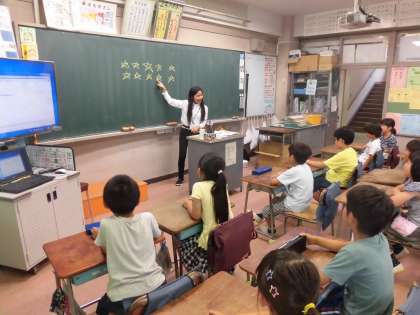 6/7 2年 外国語活動 公開日 2019/06/07 更新日 2019/06/07 学年 今日の外国語は数字の学習!黒板の星マークやテレビに映ったいろいろなものを数え、1から20まで、英語での言い方を学びました。 大きな声で発音したり、ビンゴゲームに熱中したりと、楽しい中でもしっかり学ぶことができました。 ラブリー先生、支援員の皆様、ありがとうございました。