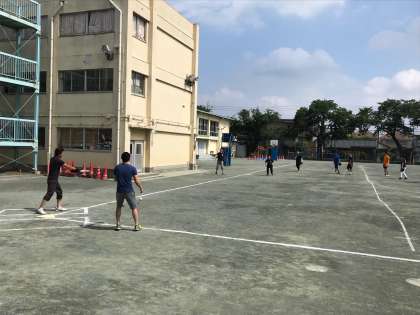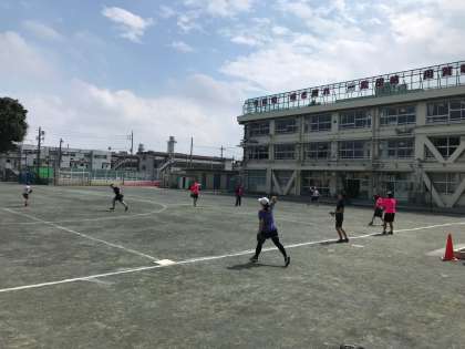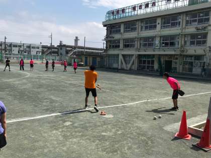 6/8 ソフトボール大会 その1 公開日 2019/06/08 更新日 2019/06/08 学年 学校公開後は、毎年恒例おや児の会の方々と教職員とのソフトボール大会です。 雨が心配されていたが、予想以上に良い天気☆試合に向けてウォーミングアップが始まりました!