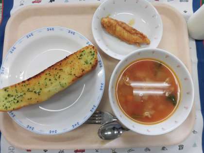 今日のスープは、今が旬のトマトを使った「ミネストローネ」です。そこで今日は、「ミネストローネ」のクイズを出したいと思います。ミネストローネは、どこの国の料理でしょうか?