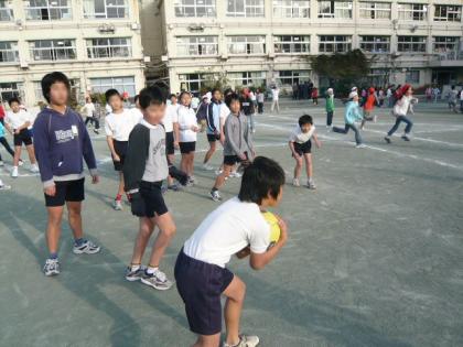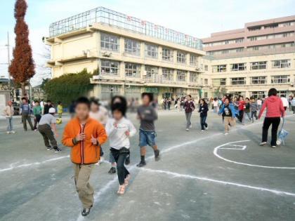 始業前の朝遊び「わくわくタイム」が始まる前の時間を使って、5,6年生の駅伝の練習に触発されたのでしょうか、もう持久走をはじめている子どもたちがいました。