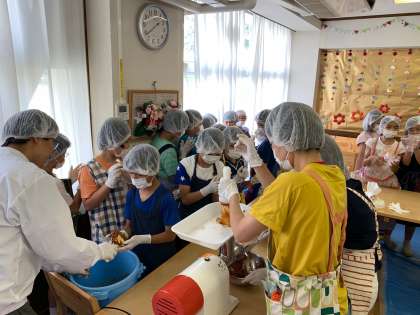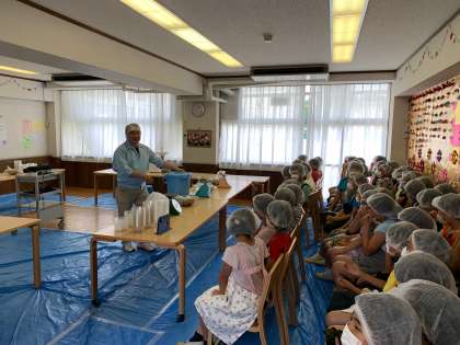 5年 味噌づめ 公開日 2019/06/25 更新日 2019/06/25 学年 6月21日(金)に味噌づめを行いました。 2月に東京農業大学に行って仕込んだ味噌が出来上がり、東京農業大学の古庄先生のご指導のもと、味噌のパック詰めをしました。 また、古庄先生から味噌のもつ栄養についても詳しく教えていただきました。 夏休みにはこの味噌を使った料理にもチャレンジします。 たくさんの保護者の皆様にもお手伝いをしていただきました。