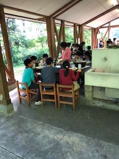 美味しいカレーが出来上がりました。みんなそろって班ごとにいただきますをしました。