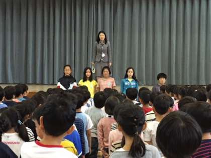 6/24 全校朝会 公開日 2019/06/26 更新日 2019/06/26 学年 朝から雨のため体育館での全校朝会となりました。 校長先生からは、3年生が行った交通安全教室でのお話があり、全校で交通ルールについて確認をしました。また、日曜日に行われた卓球大会のお話もありました。頑張った子たちが立ち、みんなで拍手を送りました。